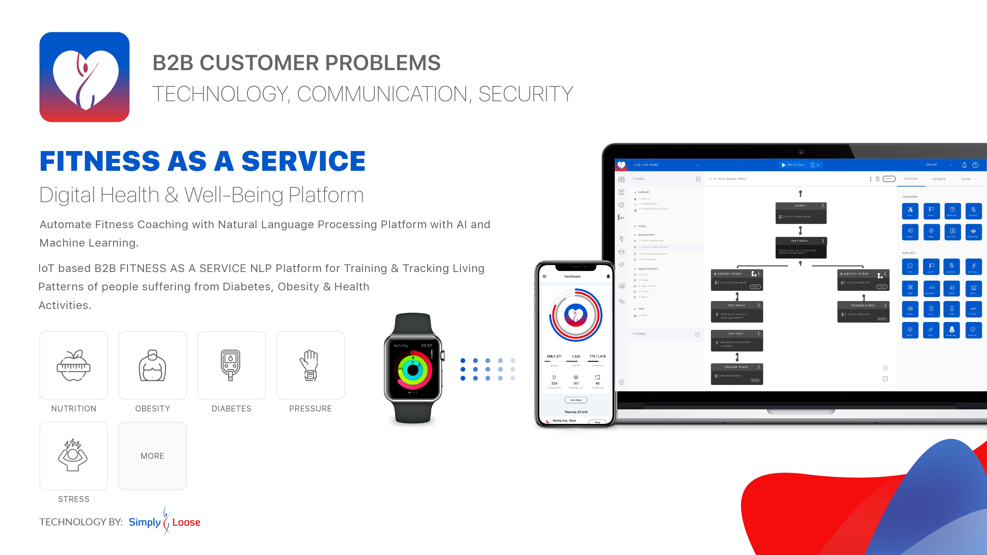 GANLBT WILL BE With its extendable conversational Generative AI Natural Language Brain Technology (GANLBT), SIMPLYLOOSE is the only market-leading NLP/NLU platform that is revolutionising how customers interact with health experts.